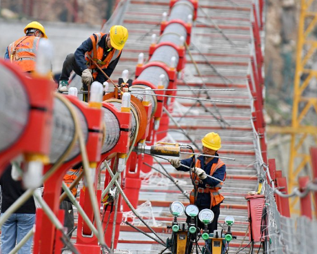 在這壯觀背后,是無數搭建工人辛勤付出的身影。他們每日都要在高處作業,那高高的橋塔、半空的主纜之上,就是他們的“戰場”。當工人們攀爬至數十米甚至上百米的高空時,腳下是讓人眩暈的高度,耳邊是呼嘯而過的風聲,每一個動作都必須小心翼翼。