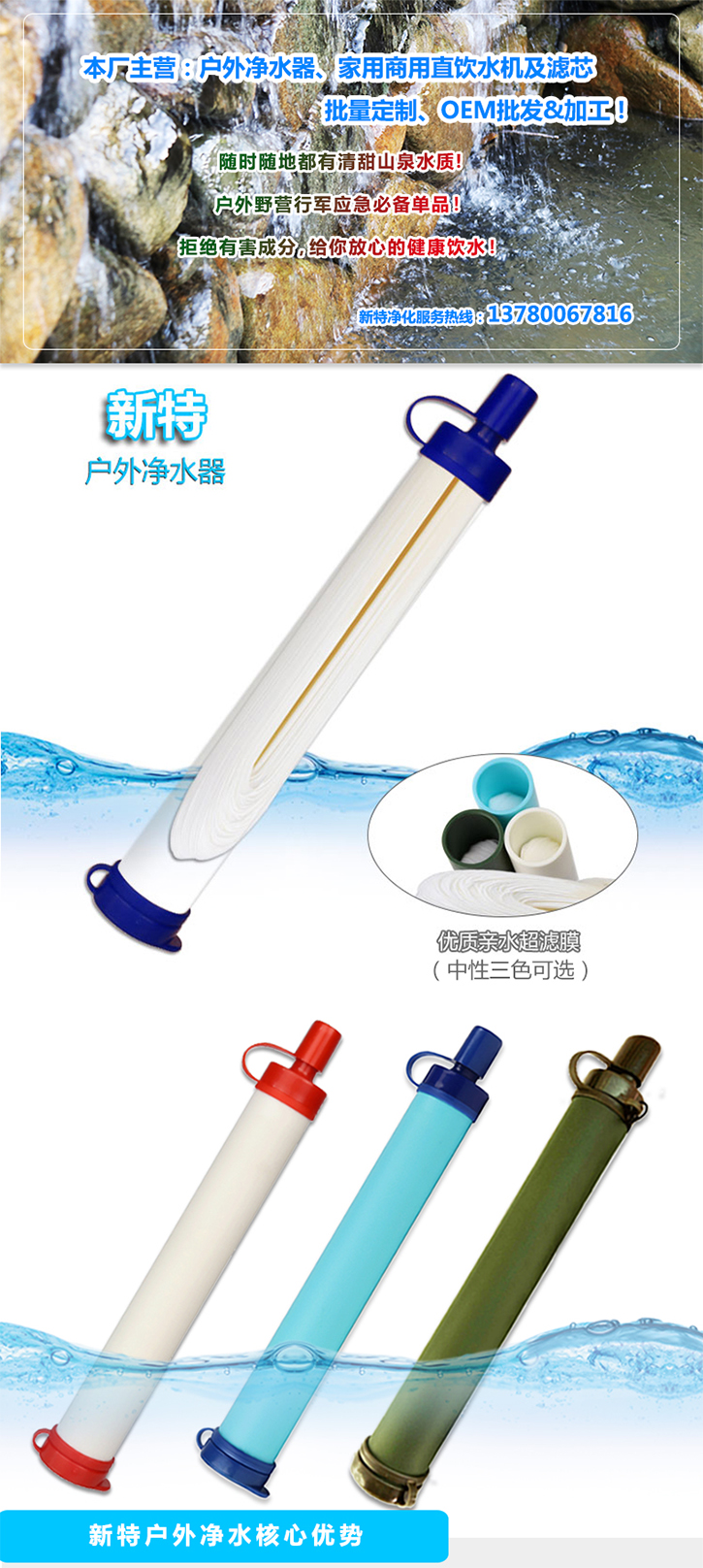 B-QM型戶外便攜式凈水吸管 野外個人生存吸管式凈水器(全膜絲結(jié)構(gòu)類似LIFESTRAW)